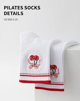Calcetines de Pilates antideslizantes con volantes personalizados OEM para mujeres Calcetines de yoga con agarre personalizado para Studio Cherry logo Calcetines de Pilates Grippy para niñas